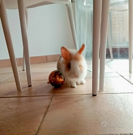 Coniglio bianco e dolcissimo di circa 6 mesi cerca casa , Compreso di gabbia 90×75×75, beverino, mangiatoia, ciotola in terracotta x cibo,due sacchi di fieno ed uno di cibo ! No perditempo ,solo amanti di animali!
