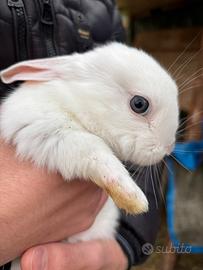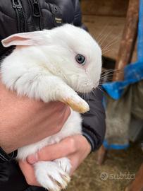 coniglio bianco con occhi azzurri,avrà all'incirca due mesi non si sa ancora il sesso,solo persone che non hanno brutte intenzioni,disponibili tanti altri colori