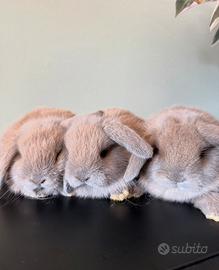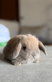 Vendo ultimo cucciolo di 3 nati il 10 novembre. Al momento è già svezzato. Mangia fieno, pellet e verdure. Abituato con altri animali, resta più piccolo rispetto al coniglio nano, ariete e leone. Carattere dolce e coccoloso. Abituato alla lettiera.