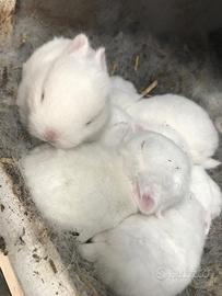 Salve , vendo conigli ermellini massimo peso 1.100/1.200 kg tutti bianchi e occhi azzurri di razza , allegati anche mamma e papà , disponibili a luglio.