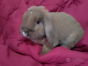 Coniglio Mini Lop Madagascar, occhi azzurri.