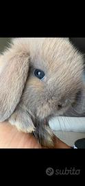 Vendo cucciolo di minilop, il coniglietto è nato il 10 novembre quindi è già pronto e svezzato per essere adottato. È molto tranquillo e giocherellone adatto anche con altri animali. Da adulto raggiunge circa 1,2kg ed è la razza più piccola rispetto all'ariete, nano o al testa di leone.