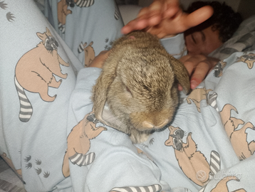 Vendo a malincuore coniglio minilop di 6 mesi, compreso di gabbia completa. È dolcissima,adora essere in braccio e ricevere coccole! I conigli minilop vengono utilizzati per la pet terapy proprio per il loro carattere perché trasmettono serenità!