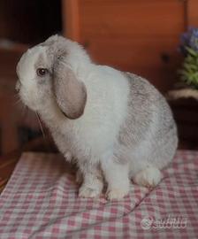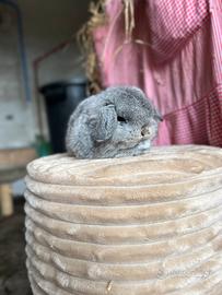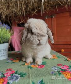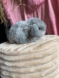 Disponibile per la prenotazione, cucciolo maschio di Minilop, colorazione CHIN nato il 14/12/25 da due genitori con anello di riconoscimento della razza con morfologia e carattere stupendi ( in foto i genitori).