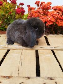 Disponibile in sede cucciolo di coniglietto nano ariete mini lop varietà cioccolato molto docile e tranquillo abituato al contatto umano possibilità di acquistare kit completo per il coniglietto gabbie mangimi accessori e inoltre informazioni utili su cura alimentazione igiene Pagine social Piccolo Zoo Villaricca