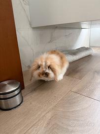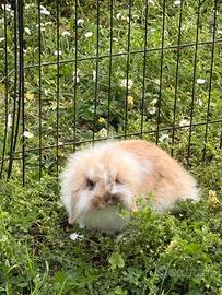 Vendo, a malincuore, cucciola di due mesi (nata il 25/01) di coniglio Ariete femmina con prima vaccinazione e controllo veterinario. Abituata a fare i bisogni nella lettiera. Già svezzata magia pellet e fieno. Vendo con gabbietta completa di accessori e trasportino nuovo. Per altre informazioni contattatemi.