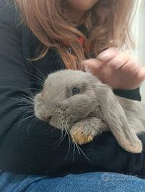 Cedo a malincuore coniglio nano ariete di quattro mesi colore grigio sesso maschio, è abituato al contatto, affettuoso e curioso. Mangia pellet(senza cereali), fieno e verdure fresche tutti i giorni. Contattatemi pure se interessati.