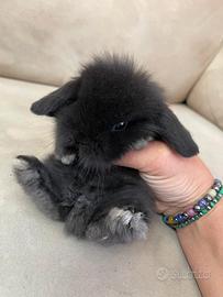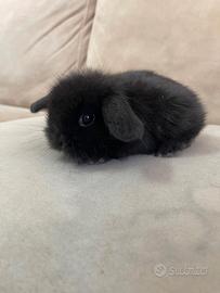 cucciolo di coniglietto nano ariete mini loop NERONE Possibile acquistare kit completo gabbia accessori ect