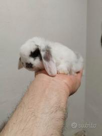 Disponibile in sede cucciolo di coniglietto nano ariete mini lop varietà bicolor bianco e grigio molto docile e tranquillo abituato al contatto umano possibilità di acquistare kit completo per il coniglietto gabbie mangimi accessori e inoltre informazioni utili su cura alimentazione igiene Pagine social Piccolo Zoo Villaricca