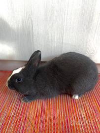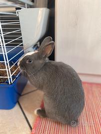 Vendo un coniglietto nano di 3 mesi, di colore grigio con occhi blu celeste.