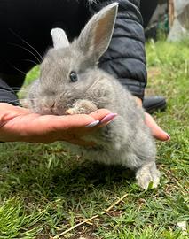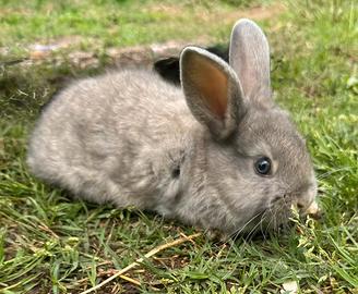 Coniglio nano grigio con occhi grigi, maschio. Viene ceduto con libretto sanitario attestante vaccinazione. È presente anche la foto dei genitori!