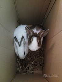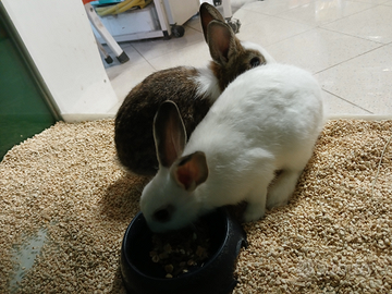 Vendo in coppia 2 conigli nani femmine. Stanno sempre insieme, per questo non voglio dividerle. Hanno sui 4 mesi. Sono buone e sane. €45
