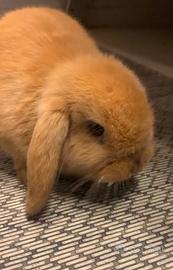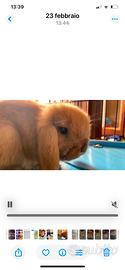 Vendesi Coniglio Nano Minilop, maschio, color champagne, con gabbietta per coniglio, portafieno, abbaveratoio e mangiatoia.