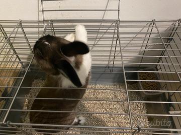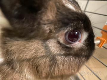 Vendo coniglio nano allevato a mano dolcissimo, compreso di gabbia, mangiatoia e beverino 70€ TRATTABILE!! Contattare solo se realmente interessati