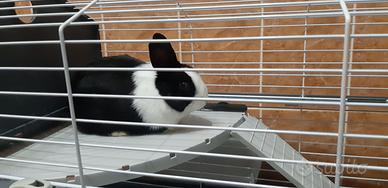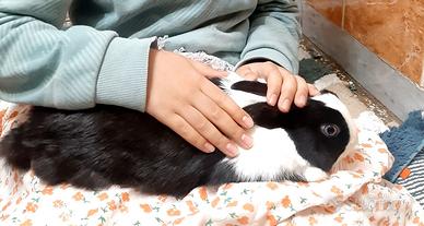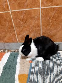 Coniglio nano olandesi maschio, età circa 8 mesi, abitudine ed vivace. lo vendo con la sua lettiera,pellet e fieno ,si trova in zona Casal Bertone