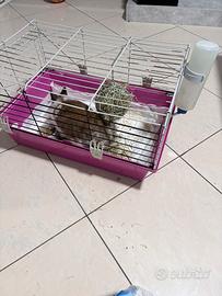 o Accessori completi: beverino esterno a goccia, ciotola in ceramica per il mangime e una sfera porta-fieno sospesa (molto utile per mantenere il fieno pulito).
