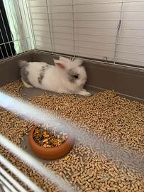 Disponibile coniglio nano testa di leone maschio vacinato con libretto sanitario vendo con gabbia compresa