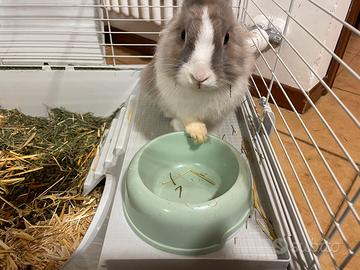 Vendo coniglio nano di sei mesi con la Relativa gabbietta poiché non lo possiamo può gestire in casa carattere un po' schivo ma coccolone da sterilizzare zona Schio