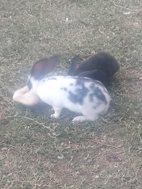 vendo conigli da Carne razza mista incrociato anche allevati a terra 20 € l'uno sia femmine e maschi per informazioni chiamare il 383888022317