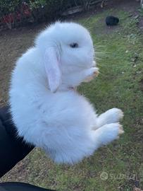 Vendo coniglia Ariete bianca Dolcissima coniglia Ariete, mantello bianco, pelo morbido e orecchie tipiche della razza. Abituata al contatto umano, tranquilla e affettuosa, perfetta come animale da compagnia.