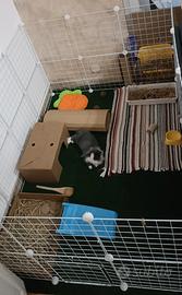 Vendo cucciola dolcissima e coccolona di testa di leone di tre mesi. Ama farsi fare le coccole ed ha un carattere socievole e giocoso. Con lei sono incluse tutte le sue cose che comprendono: Recinto modulabile in altezza e larghezza nuovissimo con ancora pezzi nella scatola per poterlo ampliare o alzare, tappeto finta erba per la base del recinto, 2 beverini per l'acqua, 1 dispenser per il cibo secco (pellet) a caduta graduale, gabbia grande nuovissima (usata 25 giorni) completa di porta fieno e ciotola, 4 sacchi e mezzo di pellet da 15 kg ciascuno per la lettiera, accessori per la toilette (taglia unghie, spazzola, pettine stretto,etc..), cuscinetto a forma di carota, lettiera, 1 pacco di fieno, 1 pacco nuovo di cibo secco, paletta e spazzola per la pulizia della gabbia o del recinto, salviette per la pulizia delle zampine e giochi vari.