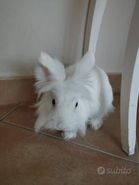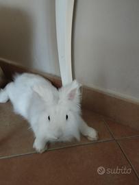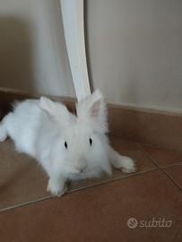 Vendo meraviglioso coniglio Testa di Leone, color bianco candido. È una nuvola di morbidezza! Ha il tipico "crine" folto intorno al collo che lo rende simile a un piccolo leoncino in miniatura. Carattere: Molto socievole, abituato al contatto umano e ideale come animale da compagnia. Salute: Sano, vivace e svezzato con cura. Colore: Bianco puro con occhietti espressivi. Cerca una famiglia amorevole che possa dargli tutte le attenzioni che merita. Per foto, video o altre info, contattami in privato!