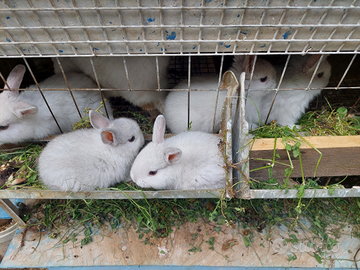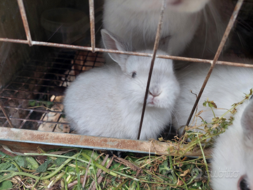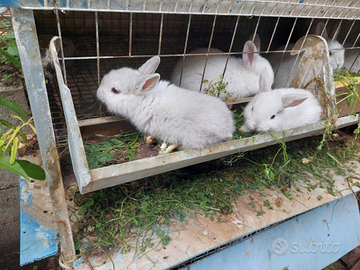 Bellissimi e giocosi coniglietti bianchi. Di piccola taglia.