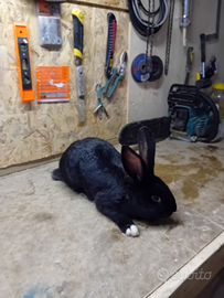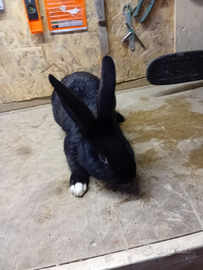 Coniglo nero co zamba bianca di 5 messi é bel grande