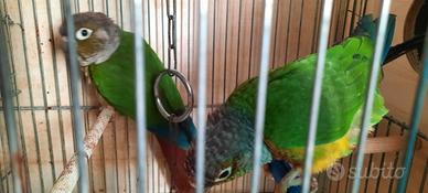Conuri guance verdi coppia pronta per la stagione riproduttiva con ottimi colori allevati a mano e quindi interagiscono con noi e cominciano a ripetere le parole compresi regolari documenti