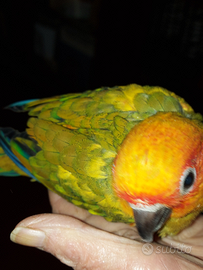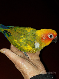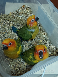 Tre conuri del sole allevati a mano.si danno svezzati.documenti in regola