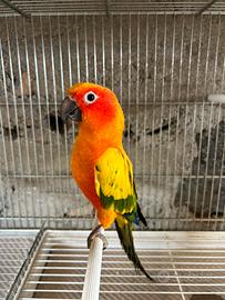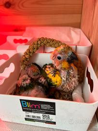 Disponibili fin da subito e su prenotazione pulli allevati a mano di conuro del sole O disponibili a fine svezzamento.