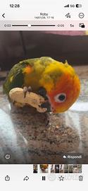 Cedo splendido Conuro del sole femmina di 5 mesi con regolare documentazione di sessaggio , è molto vivace e affettuosa, è abituata al contatto umano