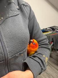 Vendo bellissimo conuro del sole maschio, bravissimo, adatto a chi vuole un coccolone. Cites in regola. Per chi la vuole, regalo gabbia che si vede in foto