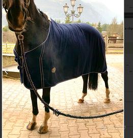 Taglia 145 Coperta in spugna per cavallo ottima post lavoro Usata solo un paio di volte Blu navy Con salvagarrese, corda sottocoda e ganci per il petto Originale minimo 40€