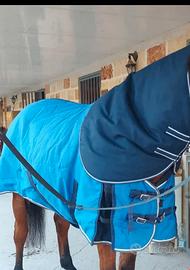 Vendo coperta Stabile Fouganza piumone invernale, a collo alto imbottito misura 155, colore bleu elettrico.