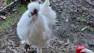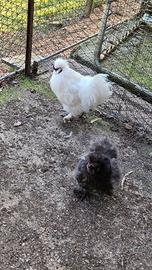 Copia giovane gallina moroseta , gallo bianco e gallina nera di 10 mesi , produce già uova