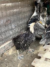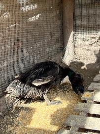 Coppia di anatre ciuffate nate nel 2025, colorazione nera con riflessi smeraldo e bavetta bianca.