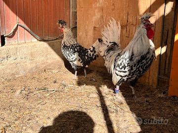 Vendo coppia Appenzeller del ciuffo argento pagliettato nero Allevate in purezza Sono anellati fiav 2024 La Femmina è piena produzione Ottima salute Animali vaccinati contro la pseudopeste aviaria. Solo persone interessate Non rispondo ai e-mail vanno tutti le cestino Non rispondo ai numeri anonimi Non fatemi perdere tempo Per info contattatemi su whatsapp 3282358466