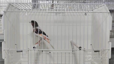 Cedo per abbondanza, coppia canarini Arlecchino Portoghese ceppo selezionato. Maschio testa liscia Foi 2024 con femmina ciuffata giovane Foi 2025 Prezzo coppia 75 euro No affaristi