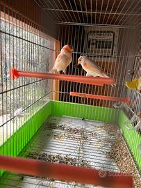 Vendo bellissima coppia di canarini mosaico compreso la gabbia gabbia misura 55 × 45