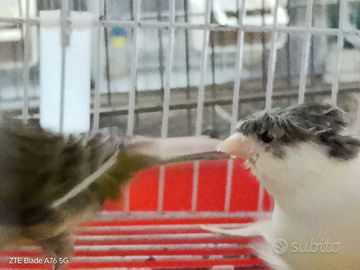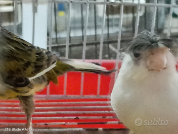 Cedo coppia di canarini completa di gabbia come da foto, femmina ciuffata. Solo chiamata al 3283397310
