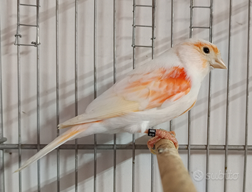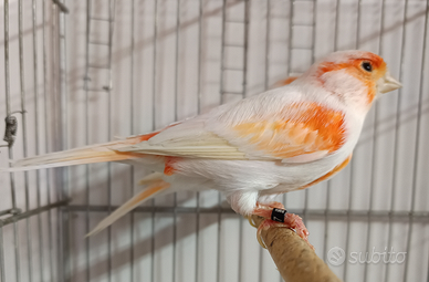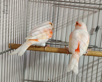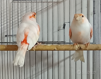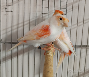Cedo due coppie di canarini rosso mosaico. -una coppia di novelli anno 2025 per 30€ - una coppia maschio anno 2023 e femmina anno 2025 per 25€.