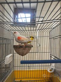 Vendo coppia di canarini maschio pezzato e femmina rosso mosaico