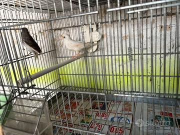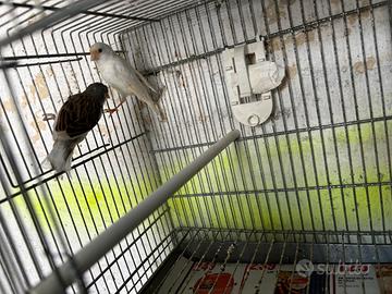 Vendo per cambio razza ultima coppia di canarini spagnoli Maschio pezzato Femmina Bianca anno 2023 entrambi Per qualsiasi informazione nn esitate a contattarmi