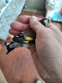 bellissima coppia cardellini acianici nostrani maschio unghie bianche e sottopiuma femmina favettina figli di pezzati no perditempo solo in coppia prezzo nn trattabile