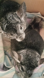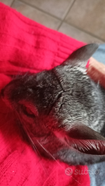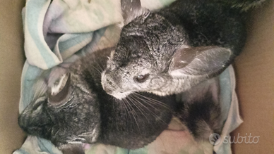Giovane coppia di cincillà, abituati al contatto umano. Vanno tenuti fuori, in un luogo riparato da e sole. Pelo morbidissimo, un vero piacere affondarci le mani.