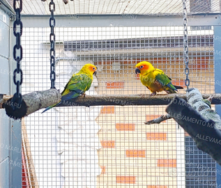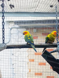 Disponibile coppia di Conuri del sole 2025, anellati, con cites e sessaggio. Possibilità di prenderli con gabbia da cova da 120