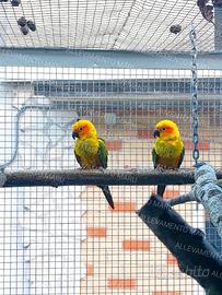 Disponibile coppia di Conuri del sole 2025, anellati, con cites in regola e sessaggi. Possibilità di prenderli con gabbia da cova da 120 con mangiatoie interne, separè e nido