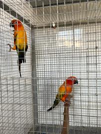Vendo coppia di conuri del sole pronti x la riproduzione con cites e sessaggi possibilità di acquistare con 90 euro in più voliera zincata di 1 metro x 1 metro ...no scambio