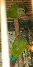 Cedo bellissima coppia, molto affiatata di Conuri guance Verdi (Pyrrhura molinae), inanellata e con regolare documentazione CITES. Pronti alla riproduzione, non consanguigni, come si evince dalla documentazione. Preferisco vendere prima che si riproducano. Valuto permuta scambio con altre specie di mio gradimento. Prezzo 80 euro totale, non trattabile.